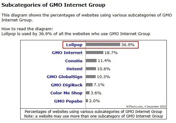 引用元:Usage Statistics and Market Share of GMO Internet Group as Web Hosting Provider, June 2025