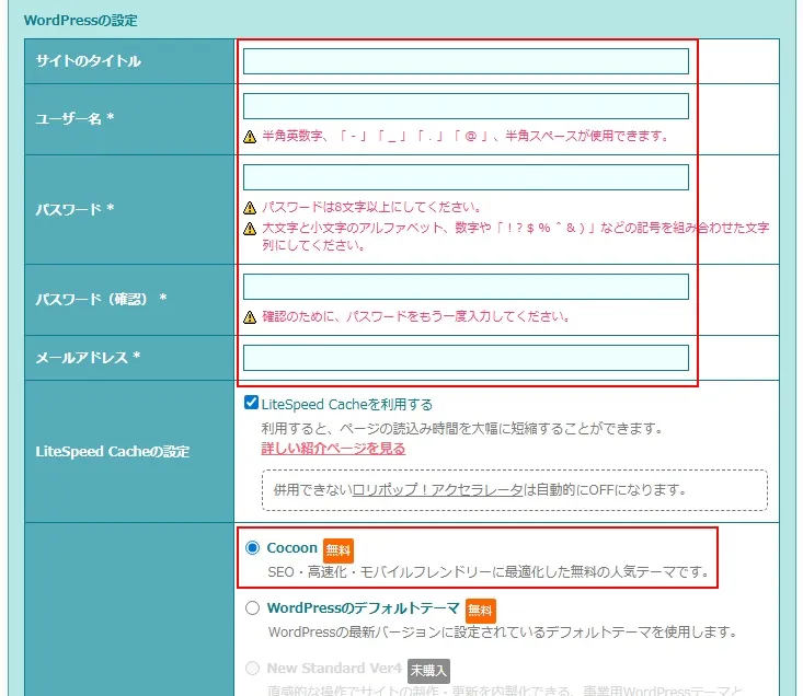 しかも、圧倒的な人気を誇る無料テーマのCocoonも同時にインストールできるんですよね。