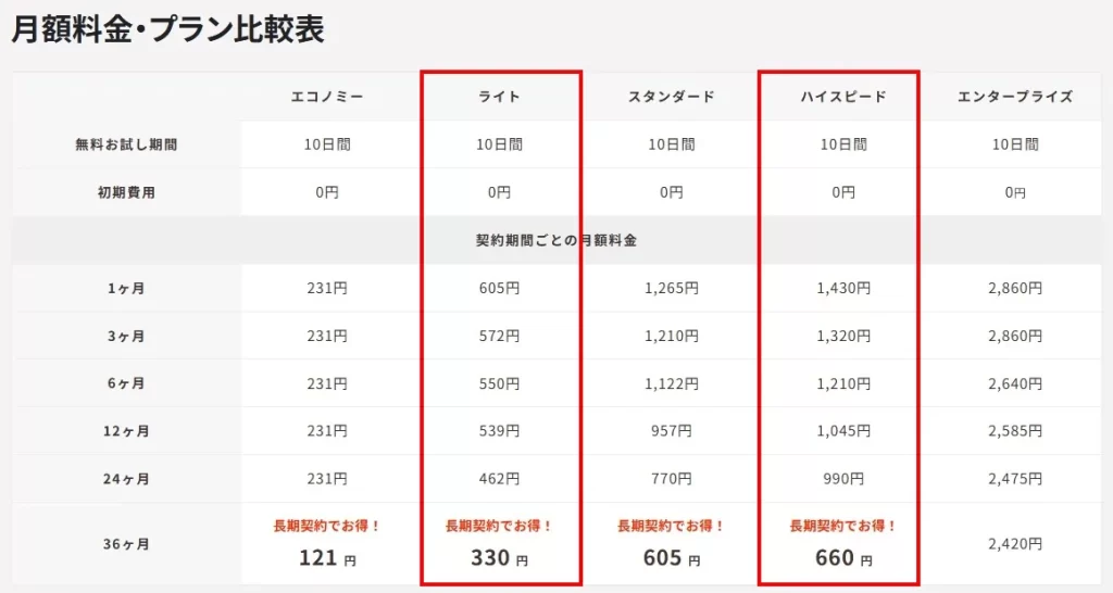 引用元:ご利用料金 – ロリポップ!レンタルサーバー