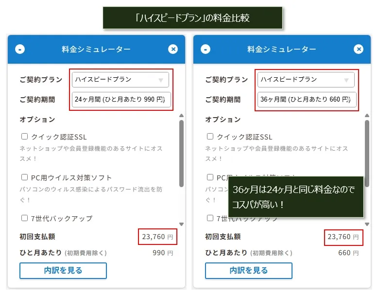 なので、ハイスピードプランの長期契約を考えている場合は、圧倒的なコストパフォーマンスの36ヶ月契約が断然おすすめです。