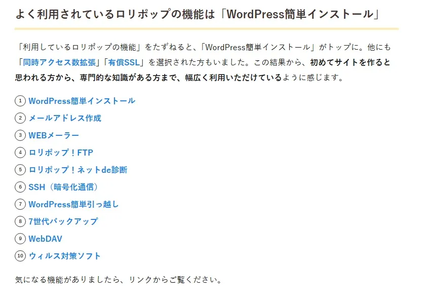 その中でも、事業の歴史が古く、安くて、安心してサイトを運営できるというというのがロリポップの強みなのかもしれません。