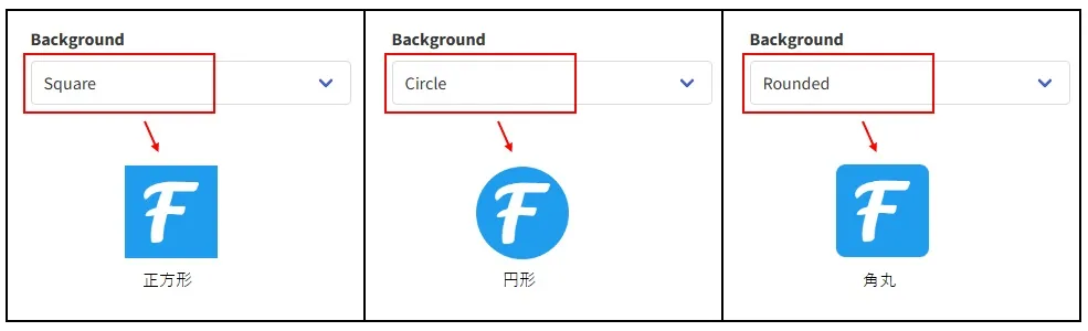 Googleの検索結果画面のサイトアイコンは丸く切り取られるため、Background(背景の形)を「円形」に変更して、文字がはみ出ない事を確認しながらファビコンを作成してください。