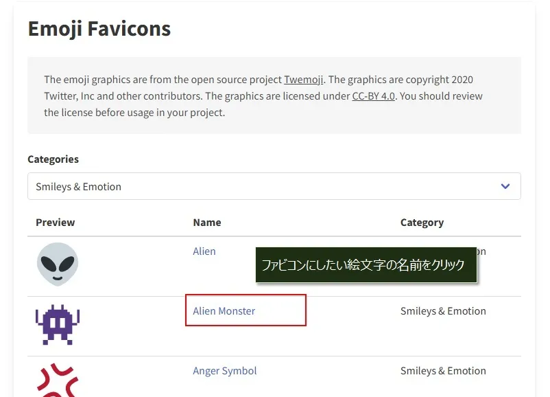 絵文字の名前をクリック。