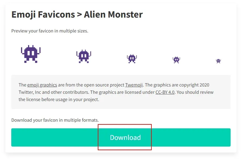 「Download」をクリックすれば、ファビコンの圧縮ファイルがダウンロードできます。