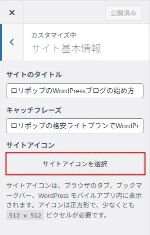 カスタマイザーからもファビコンは設定できる