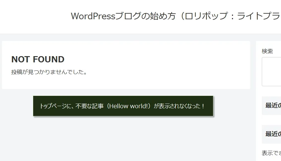 トップページを確認すると、「Hellow world!」の投稿が表示されなくなっているのがわかります。