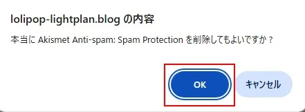 これで、プラグイン「Akismet Anti-spam: Spam Protection」が削除されます。