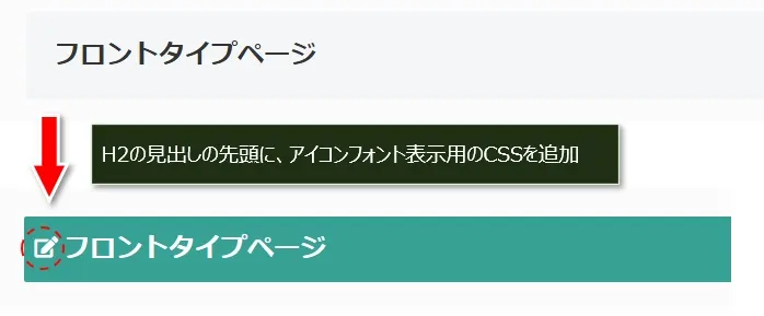 続いては、記事本文内の見出し(H2など)の先頭に、アクセントとしてアイコンフォントを表示させる方法です。