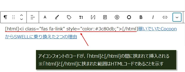 これで、アイコンフォントのHTMLコードを本文に挿入できました。
