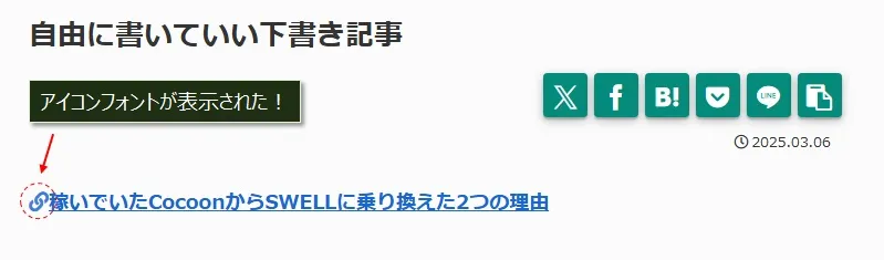 ここまで、Cocoonで「Font Awsesome 5」のアイコンフォントを表示させる方法を解説しました。