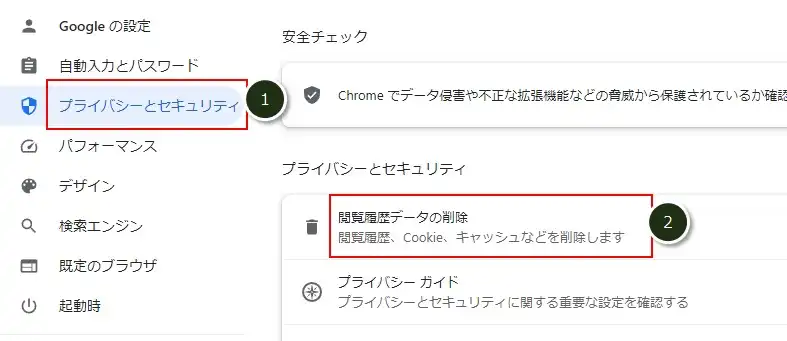 「Webページの再表示」でも解決できない場合は、ブラウザのキャッシュをクリアしてみましょう。