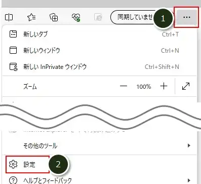 Edgeも以下の手順でメニューから開けます。