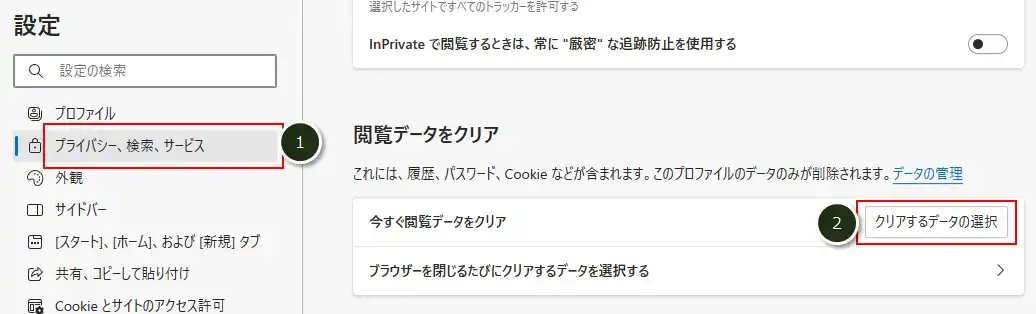 Edgeのキャッシュをクリア