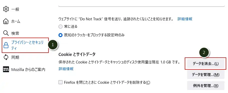 Firefoxのキャッシュをクリア