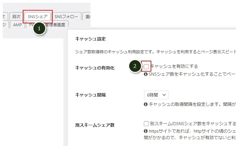①「SNSシェア」タブをクリック。