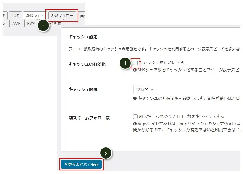 ④画面下の「キャッシュの有効化」のチェックを外す。
