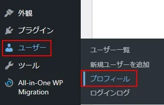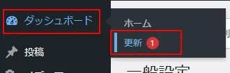 WordPress管理メニューの「ダッシュボード」→「更新」をクリック。