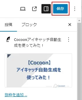 なお、公開(保存)した直後の投稿画面にはアイキャッチは表示されません。