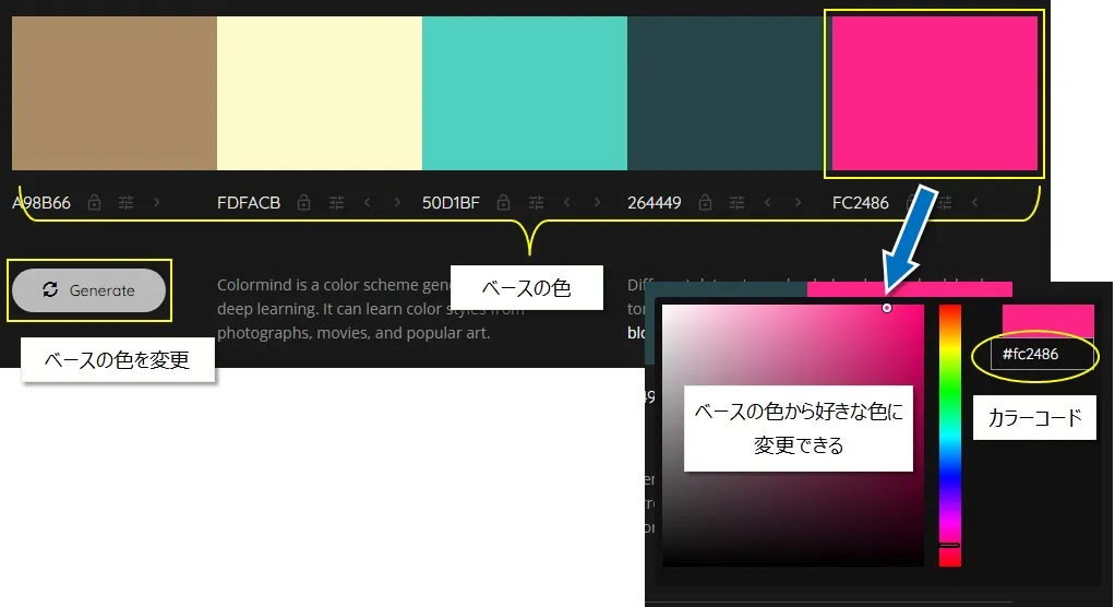 好きな色(カラーコード)は、以下のサイトで簡単に選ぶことができます。