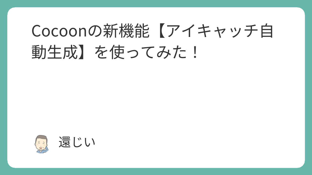 Cocoonのオリジナル機能として、バージョン2.8.4で記事のタイトルから自動でアイキャッチが生成できる機能がリリースされました。(ベータ版です)