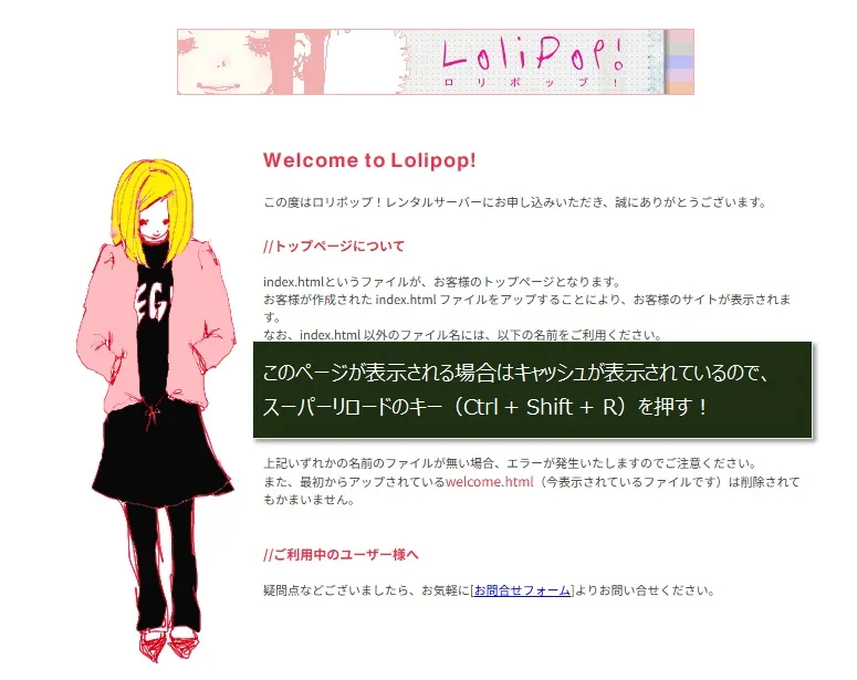 (画面赤枠の右側)candypop.jpはロリポップのドメイン名