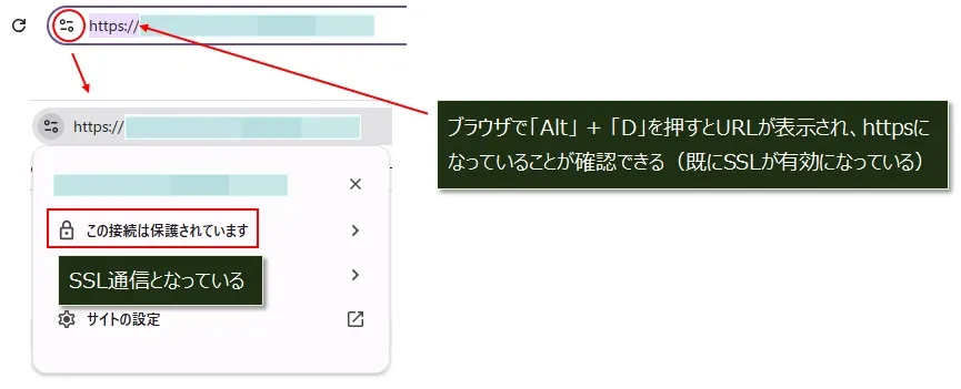 ちなみ、ブラウザで「Alt + D」を押すと、httpsで始まるURLが確認できます。