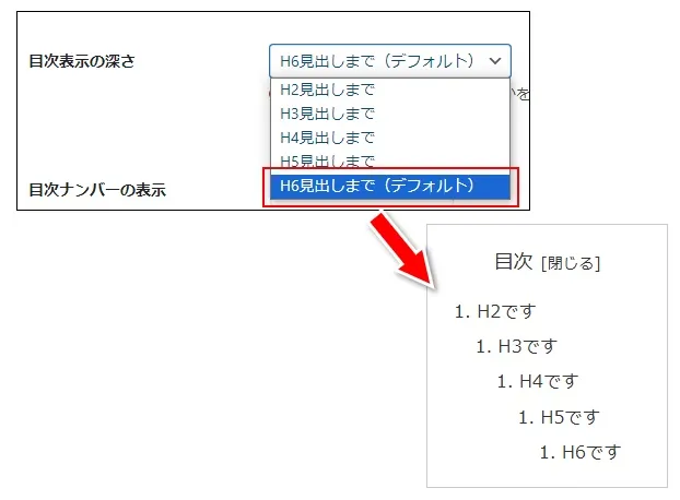 目次の使いやすさを考えると、H3または多くてもH4までの表示にすることをおすすめします。