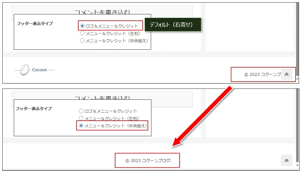 Cocoon設定の「フッター」