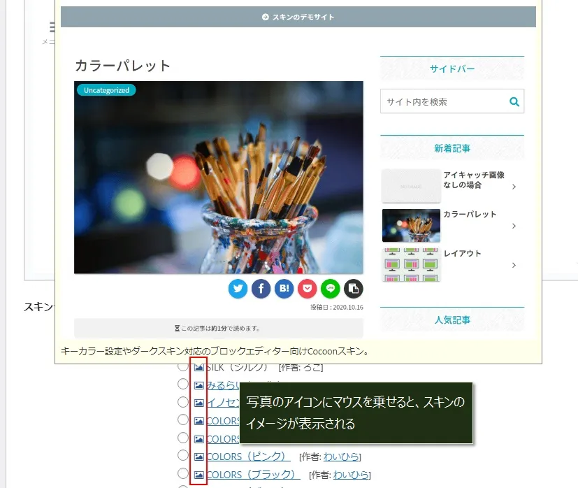 Cocoon設定の「スキン」