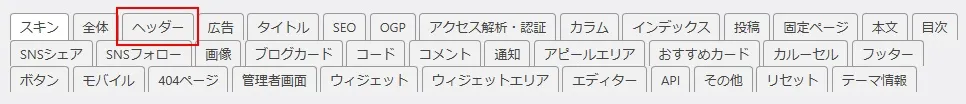 設定項目「ヘッダー」のセンターロゴ