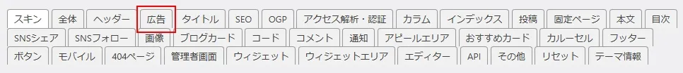 Googleの広告である「アドセンス広告」を利用したい場合は、アドセンスの項目を設定します。