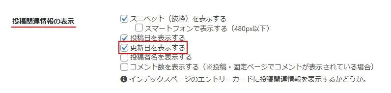 エントリーカードの投稿関連情報に「更新日」を表示させる
