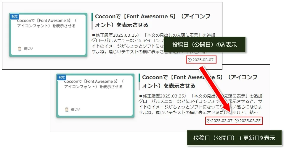 すると、投稿日と一緒に更新日も表示されるようになります。