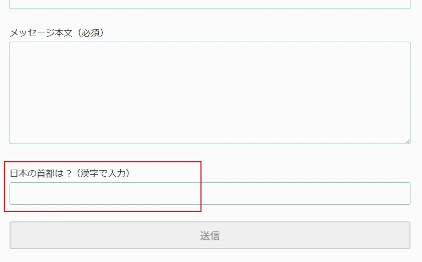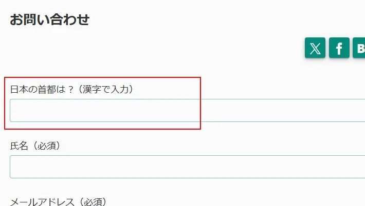 こんな風に、フォームの一番上にクイズが追加されます。